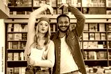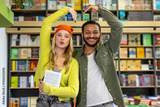 A couple of young people spending time together at the library