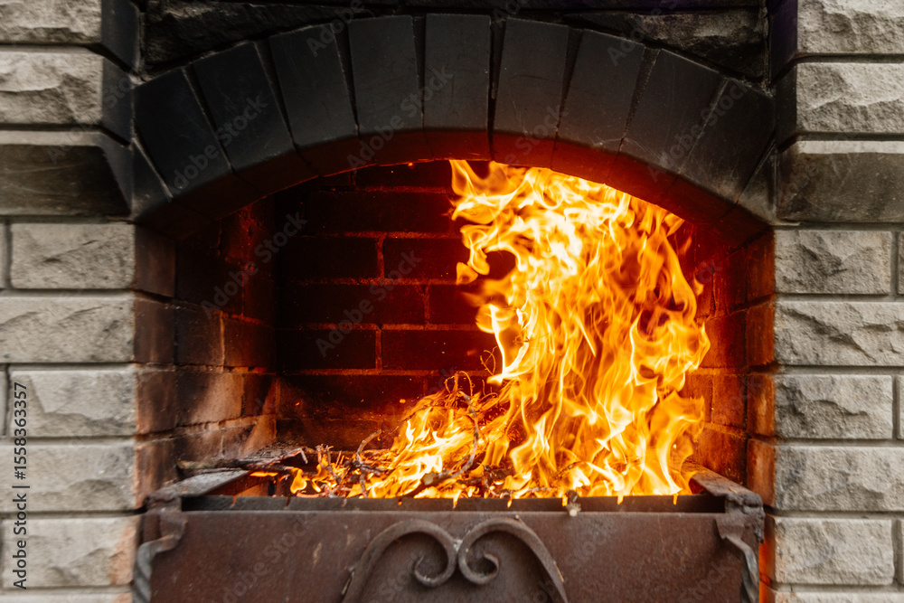 Grill flame. Outdoor. Grill flame burning fire for outdoor barbecue cooking. Big and tall flame.