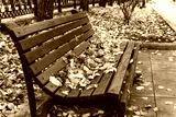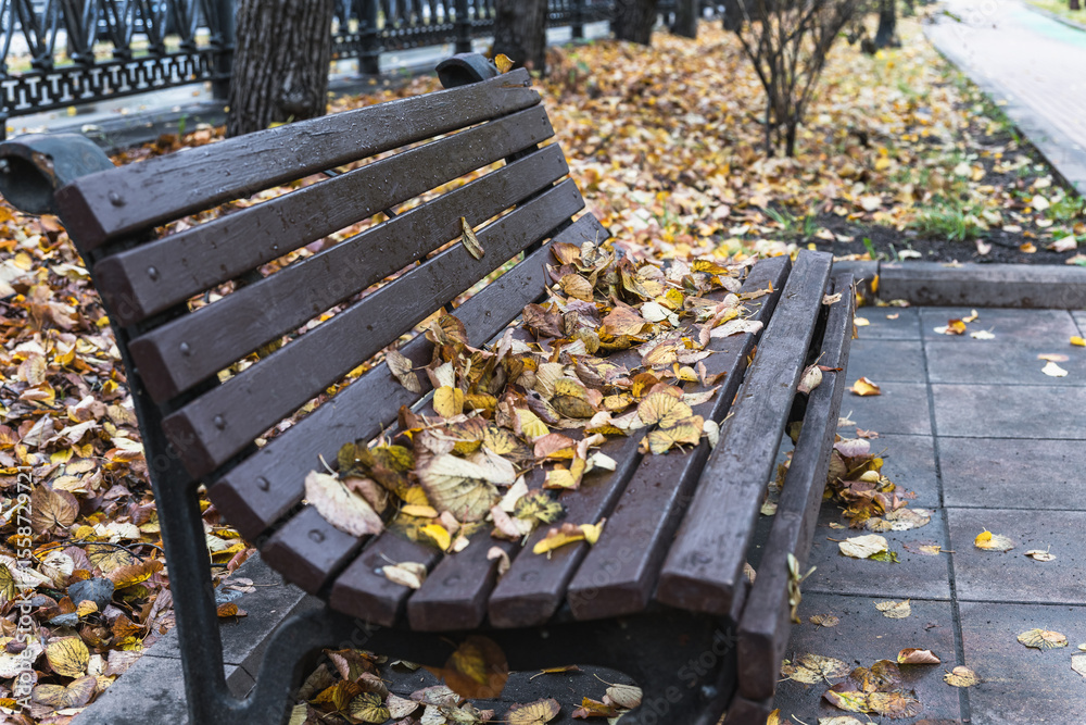 Autumn fallen leaves on the alley in the park. Selective focus, autumn background.