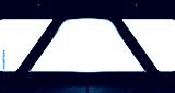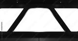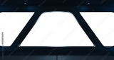 Black spaceship interior with isolated cut out transparent window. Futuristic dark starship with glowing lights