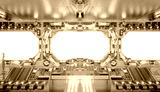 White spaceship with isolated cut out transparent window. Futuristic bright glossy interior with glowing lights