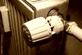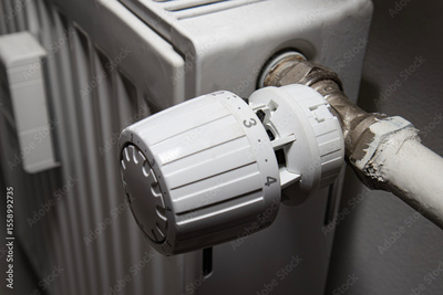 White thermostatic head on the battery. Heat regulation in the house. heating season