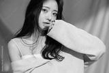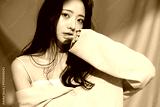ベージュの布地背景で撮影をした若い女性の高級感のある美容ポートレート