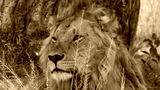 Meet the majestic male lion, the king of Africa's wild jungle. This stunning image captures the lion's fierce face, showcasing his powerful jawline and piercing gaze