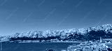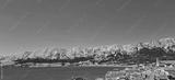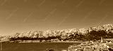 A view towards the western part of Baska Bay with red-roofed houses in the foreground and mountains in the background under a clear blue sky
