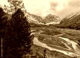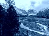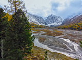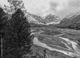 Drone view the Aktru Valley in Altai Mountains in Siberia, Altai Republic, Russia