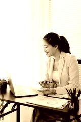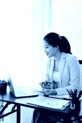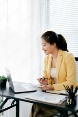 Young Asian woman doing financial accounting and taxes for a company Organizing account analysis reports Investment information Financial and tax system concepts