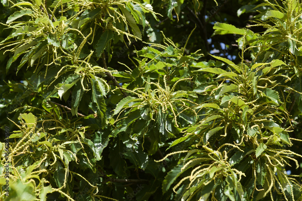 Flora of Gran Canaria - Castanea sativa, the sweet chestnut, introduced species, flowers, natural background