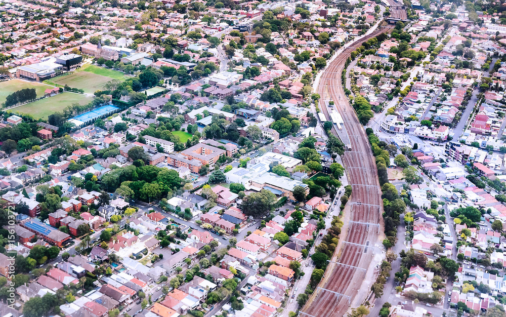 Aerial view of the urban area near Sydney Airport, Australia, Dec 2019