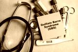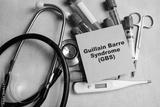 Concept of Guillain Barre Syndrome - GBS write on sticky notes isolated on Wooden Table. healthcare or Medical concept