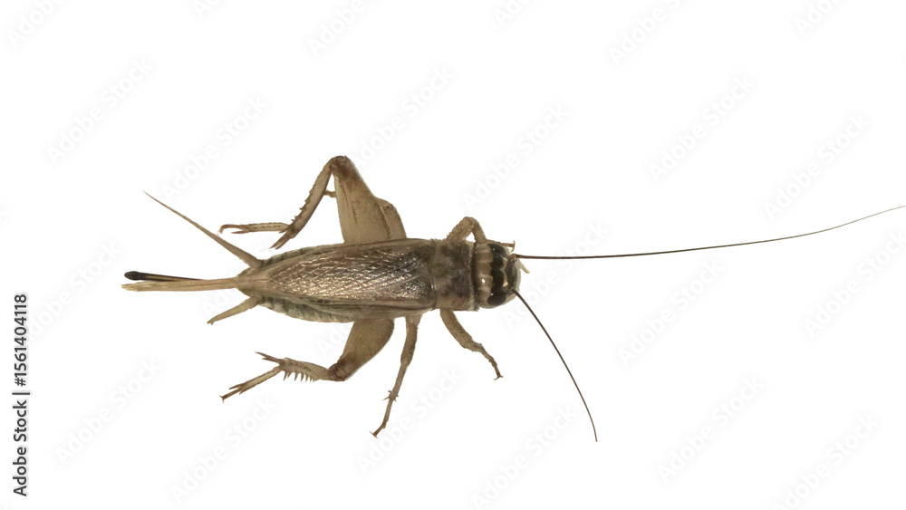 House Cricket (Acheta domesticus) with Copy Text Space. Detailed Insect Element for Educational Charts, Pest Control Ads, and Biological Studies. PNG File