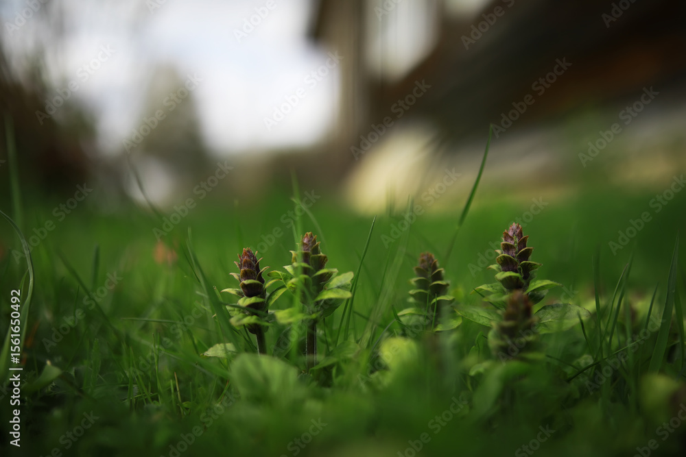 Flowers and plants summer field in sunlight