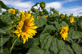 Sunflower flower close-up. Beautiful yellow sunflower field, sunflower plantation, flooded with sunlight
