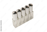 Perfume automiser, perfume transparent glass bottle isolated on white background.