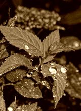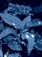 Water drops on leaves and petals after rain