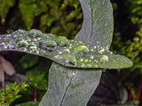 Water drops on leaves and petals after rain