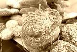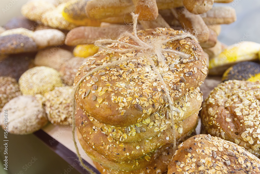 Fresh grain bread on a counter of the grocery store