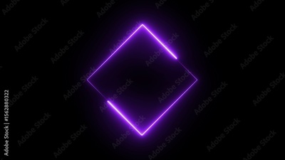 Pink color neon box icon. Neon square frame illustration and seamless black background.