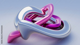 Fluid liquid chrome pink shapes abstract background. 3d illustration contemporary art