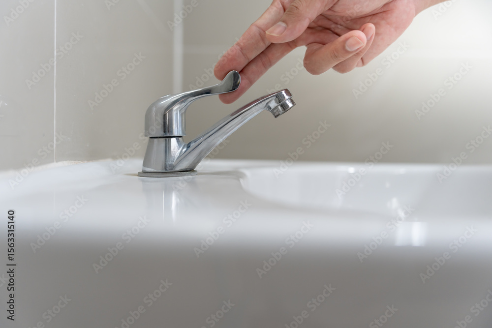 Save water. Volunteer keeps turning off the running water in the bathroom to protect environment. Greening planet, reduce global warming, Save world, life, future, risk energy, crisis , water day.