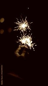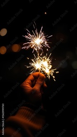 Hand holding sparklers glowing brightly against a dark night sky, creating a festive and magical atmosphere