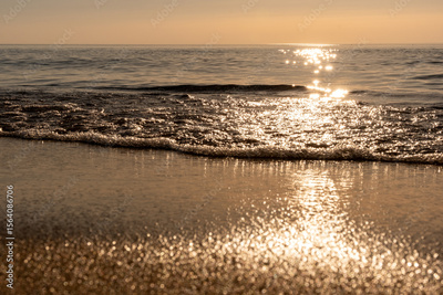 Odbicia słońca podczas zachodu nad morzem Bałtyckim w miejscowości Darłowo
