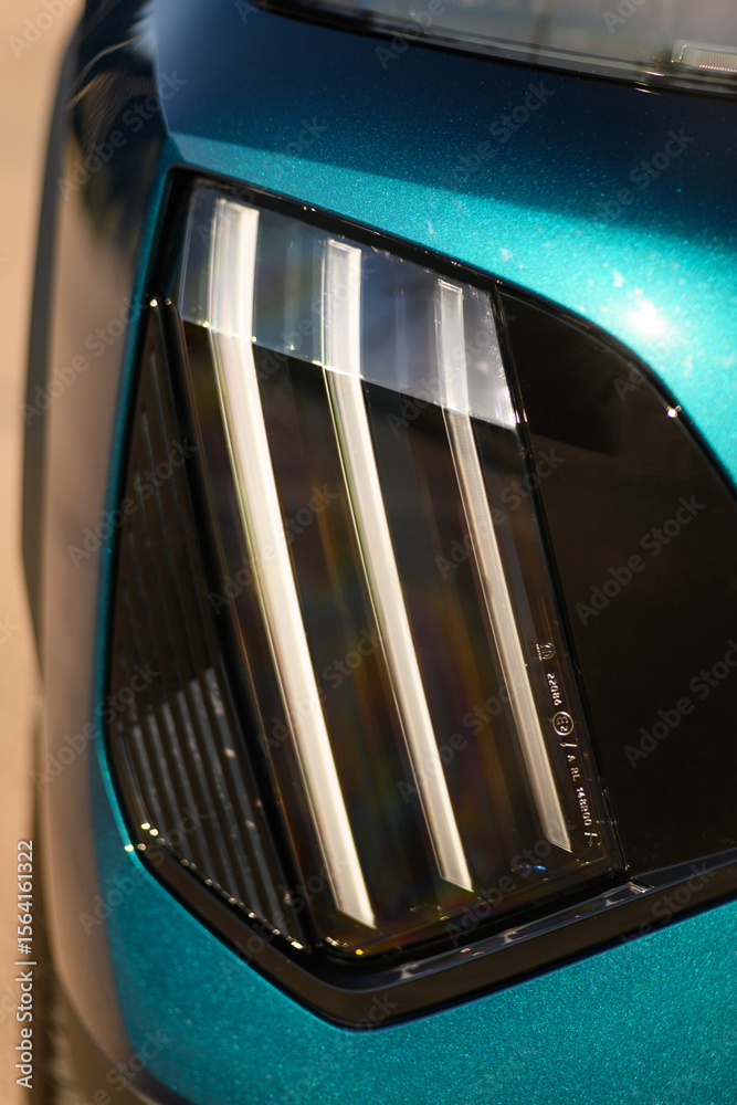 Close-up photo of the daytime running light on a modern car