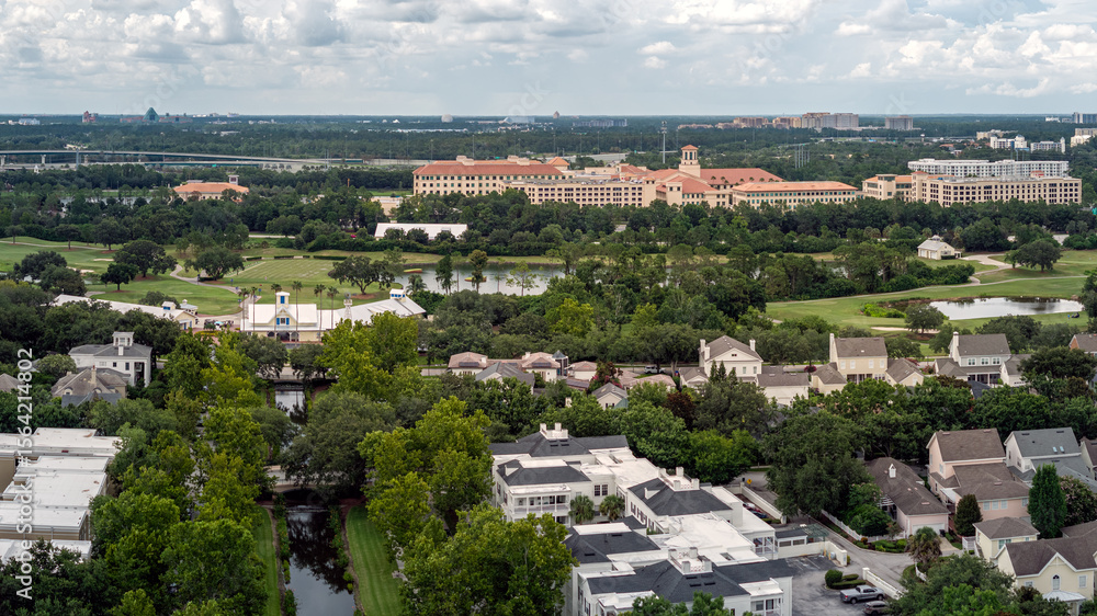 Aerial image of Celebration Florida and Hospital, USA. July 3, 2025.