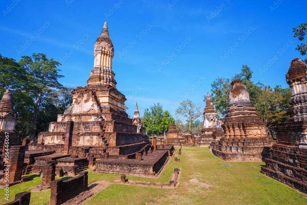 Wat Chedi Jet Thaew at Si Satchanalai Historical Park, a UNESCO World Heritage Site in Thailand