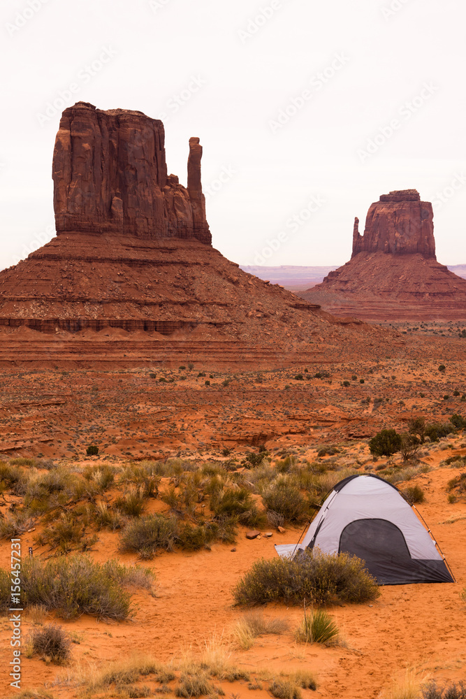 Adventure Seekers Pitched Tent in Monument Valley Mitten Buttes