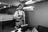 Skilled technician preparing for maintenance work in modern office space with tools at hand during daylight hours