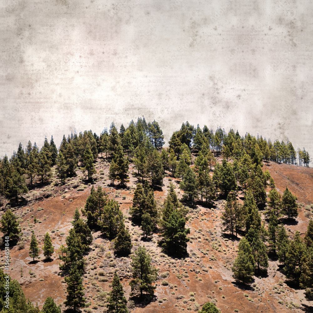 square stylish old textured paper background with orange volcanic gravel mountain Montana del Cosdeso, Gran Canaria, Canary Islands