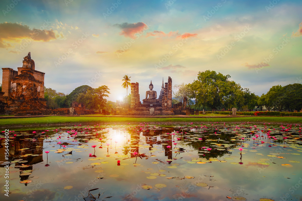 Wat Mahathat Temple at Sukhothai Historical Park, a UNESCO World Heritage Site in Thailand
