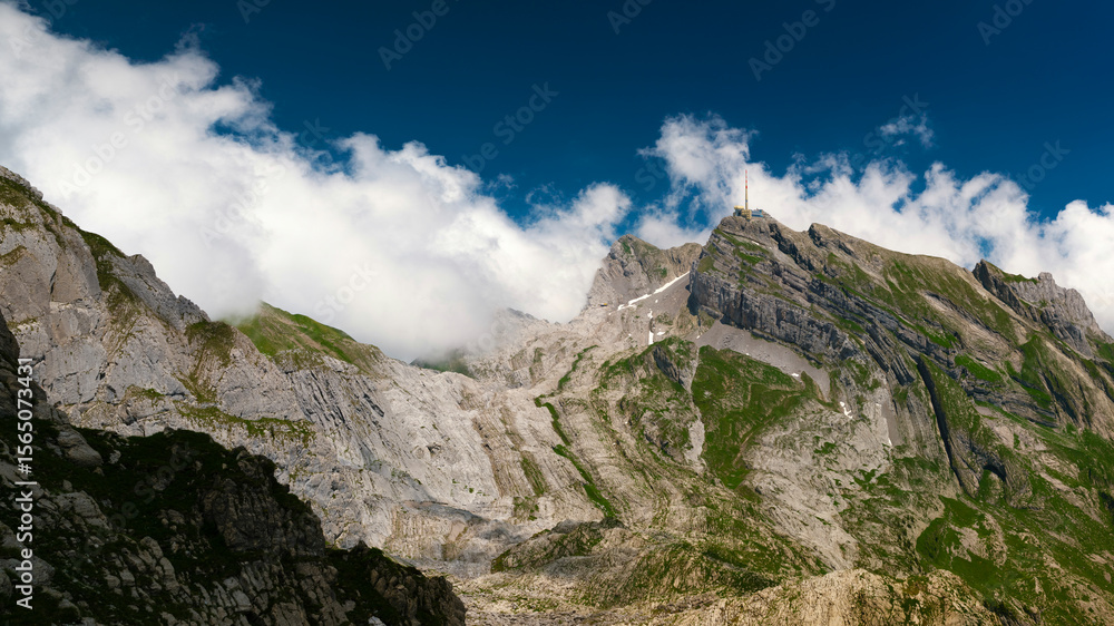 Scenic mountain landscape with lush greenery and dramatic clouds in a breathtaking natural setting