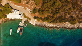 Aerial drone photo of Agistri island with clear waters, Saronic gulf, Greece