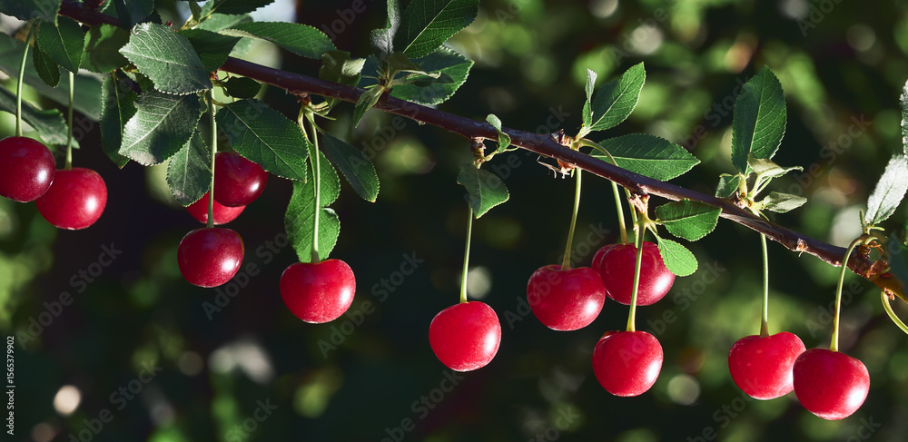Branch of cherries on a tree in garden