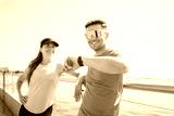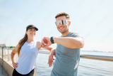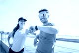 Fitness enthusiasts enjoying a sunny day by the water, capturing moments of motivation during their workout