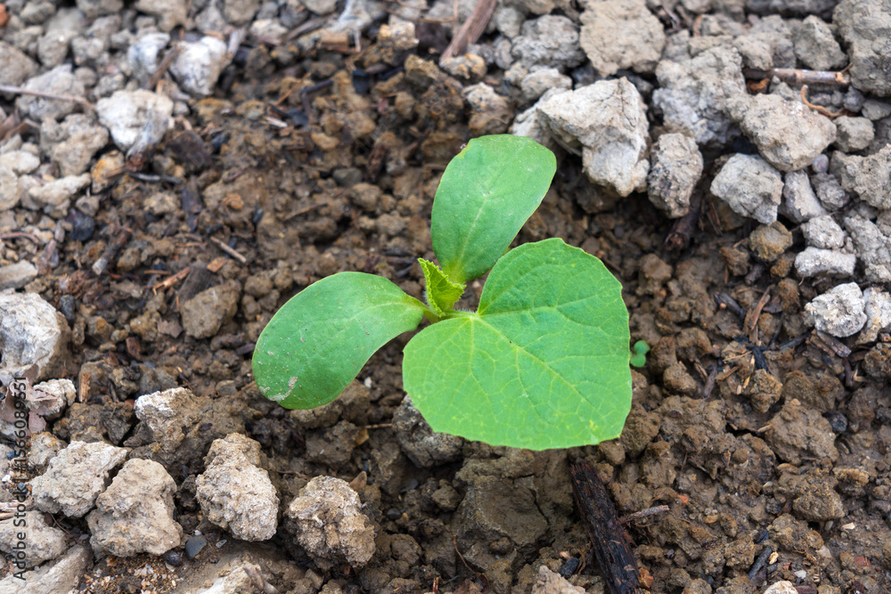 Young watermelon shoots in the melon field