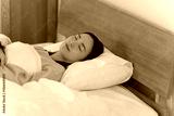夜ベッドで寝る女性