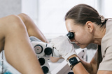 Gynecologist performing close-up colposcopy examination. Concept detailed medical inspection and women’s health