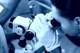 Gynecologist examines cervix using a colposcope for detailed inspection. Concept precise diagnostics and women’s health