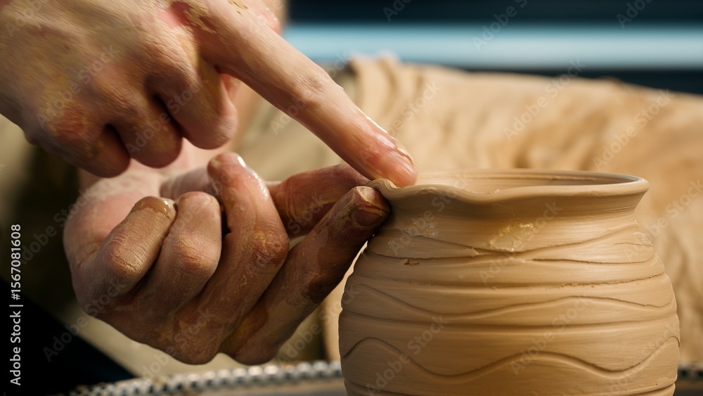Close up man hands forming modeling clay jug pot craftsman craft pottery potter master make ceramic vase small business handcraft skill workshop handmade artwork bowl hobby work ceramist earthenware