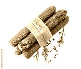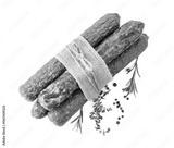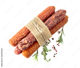 Dry cured sausages with spices isolated on a white background.