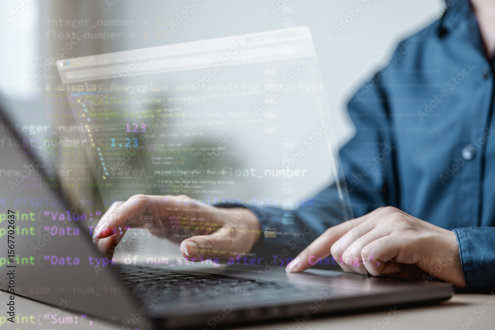 Software development business concept. Programmer coding computer. Developer programming web application technology. Software engineer. web developer.