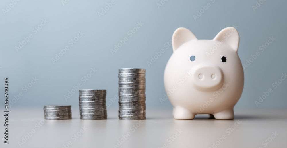 Piggy bank saving money concept. Finance banking plan. Financial save planning. Saving money plan.