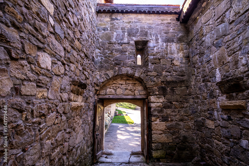 Stone walls of the ancient Armenian monastery of Surb Khach in Crimea.