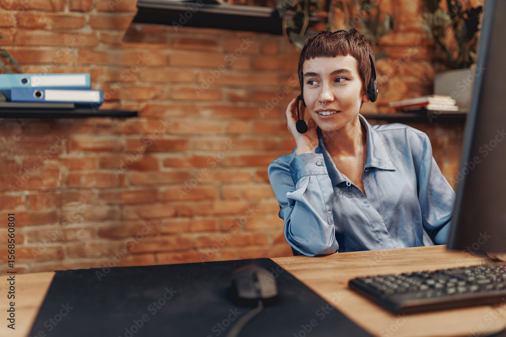 A skilled professional providing exceptional phone customer support in a modern office, ensuring quality and solutions