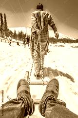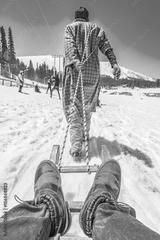 Sled driver carry the tourist on snow sled up to the hill,Kashmir state, India