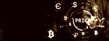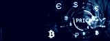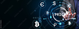 Businessman touches digital currency price interface with glowing forex and crypto symbols on futuristic financial technology background.