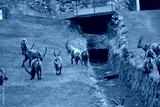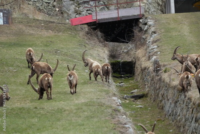 Alpine Ibex Herd in Pontresina, Switzerland – Capra ibex Walking in Mountain Grassland (Nature Wallpaper Background)